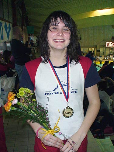 Kristýna KOLÁŘOVÁ byla nejrychlejší mezi mladšími dorostenkami na trati 50 m prsa na ZMČR dorostu v Ústí nad Labem. Zlatou medaili ji ve finále zajistil výrazně zlepšený osobní rekord, který má nyní hodnotu 00:35,17. Po Tereze HROMÁDKOVÉ je tak Kristýna druhou plavkyní oddílu, která se dokázala prosadit mezi dorostenkami na nejvyšší stupínek. Gratulujeme.